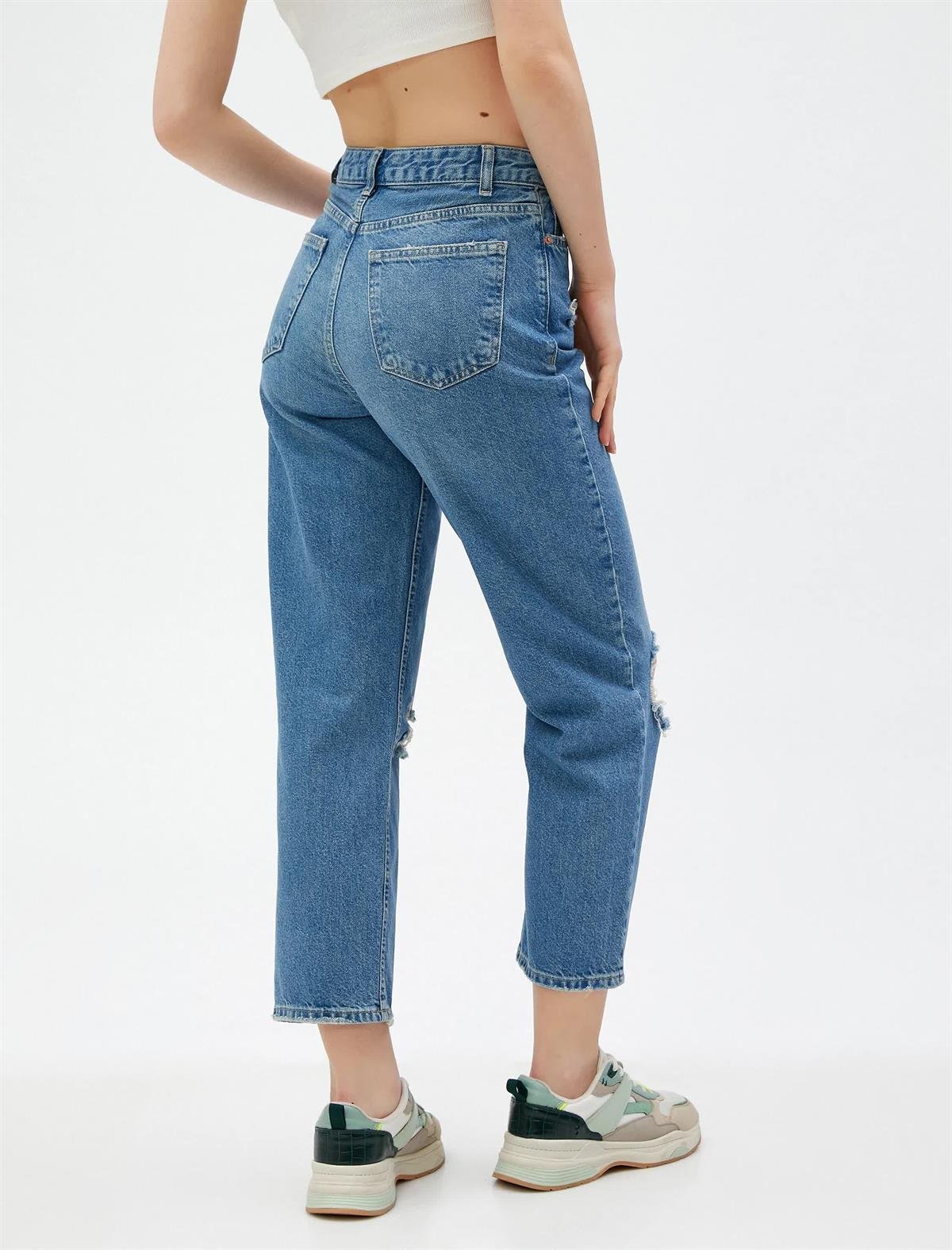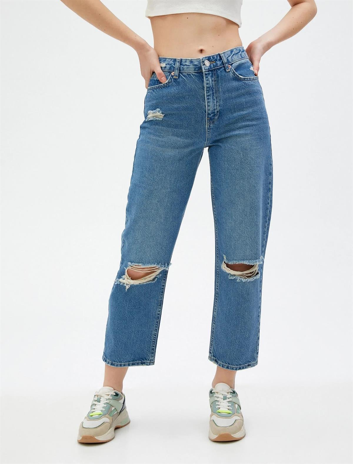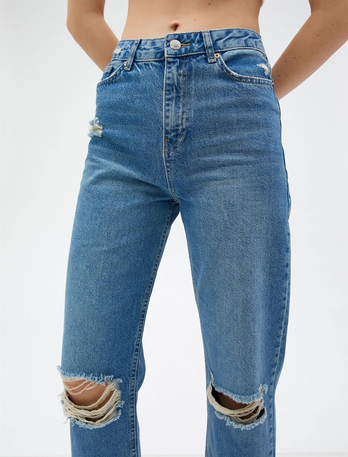 Yüksek Bel Kot Pantolon Yırtık Düz Paça- Eve Jeans (3SAL40057MD-98563)